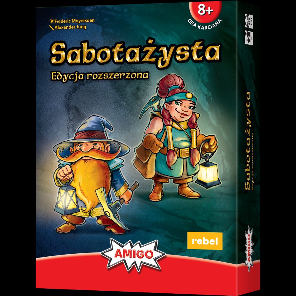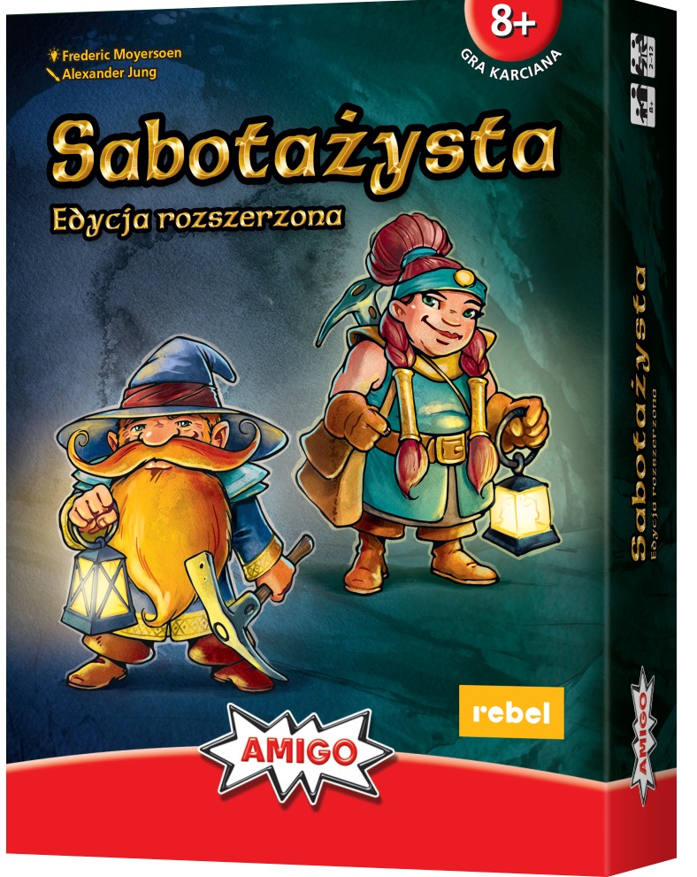 W grze podstawowej w swojej turze musisz użyć 1 karty. Oznacza to: Dodanie karty do labiryntu korytarzy tak, by pasowała do poprzednich i kontynuowała drogę. Położenie przed sobą lub innym graczem karty akcji, która będzie pomocna lub wręcz przeciwnie – utrudni mu grę. Znajdziesz wśród nich naprawy i niszczenie narzędzi, wywoływanie osuwisk czy praktyczną mapę. Spasowanie poprzez odrzucenie 1 zakrytej karty na stos kart odrzuconych. Następnie musisz dobrać wierzchnią kartę z talii na rękę. Twoja tura kończy się i rozpoczyna się tura następnego gracza. Proste? No pewnie! W ten sposób gramy do momentu, gdy talia się wyczerpie, a żadnemu z Was nie pozostały na ręce karty, które może zagrać. Górnicy zwyciężają rundę, jeśli udało im się stworzyć nieprzerwany korytarz prowadzący od karty startu do karty celu, na której jest przedstawiony skarb. W przeciwnym razie zwyciężają sabotażyści! Zawarte w pudełku rozszerzenie Sabotażysta 2 wprowadza karty, które zmieniają nieco nasze możliwości i zasady rozgrywki. Główny cel pozostaje jednak ten sam: zwycięży osoba, która zgromadzi najwięcej bryłek złota! (Noty wydawcy).