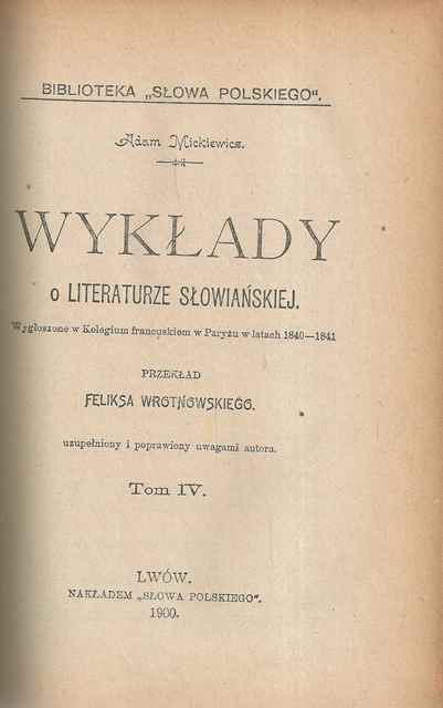 | Inne tytuły: | Wykłady o literaturze słowiańskiej T. 3-[4] |