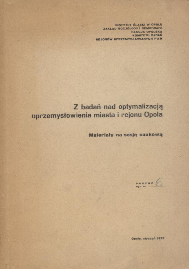 Z badań nad optymalizacją uprzemysłowienia miasta i rejonu Opola: