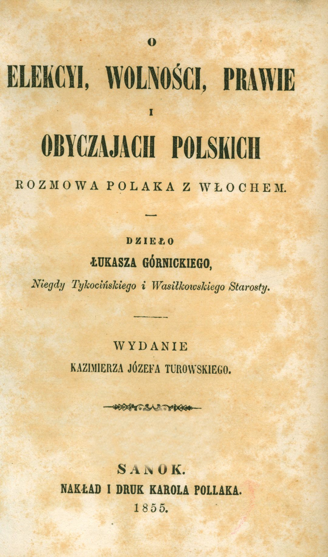 | Wydawcy: | nakład i druk Karola Pollaka (1855) Kazimierz Józef Turowski |
