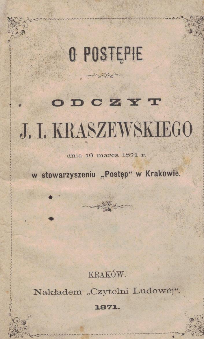 odczyt J. I. Kraszewskiego dnia 16 marca 1871 r. w stowarzyszeniu "Postęp" w Krakowie