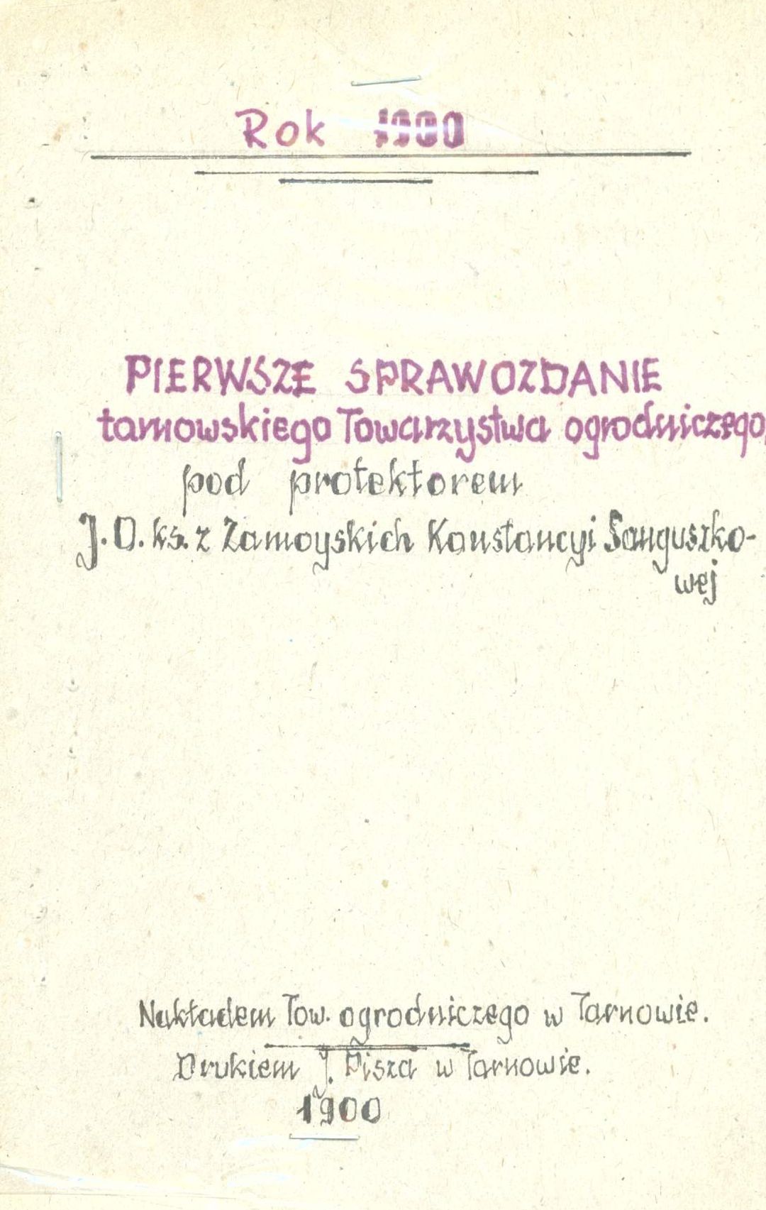 Pierwsze sprawozdanie Tarnowskiego Towarzystwa Ogrodniczego
