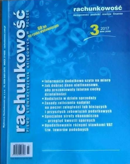 | Inne tytuły: | księgowość, podatki, rewizja, finanse Pismo Stowarzyszenia Księgowych w Polsce |