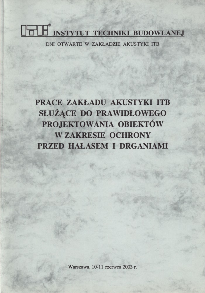 | Inne tytuły: | [seminarium] dni otwarte w Zakładzie Akustyki ITB Warszawa, 10-11 czerwca 2003 r. |