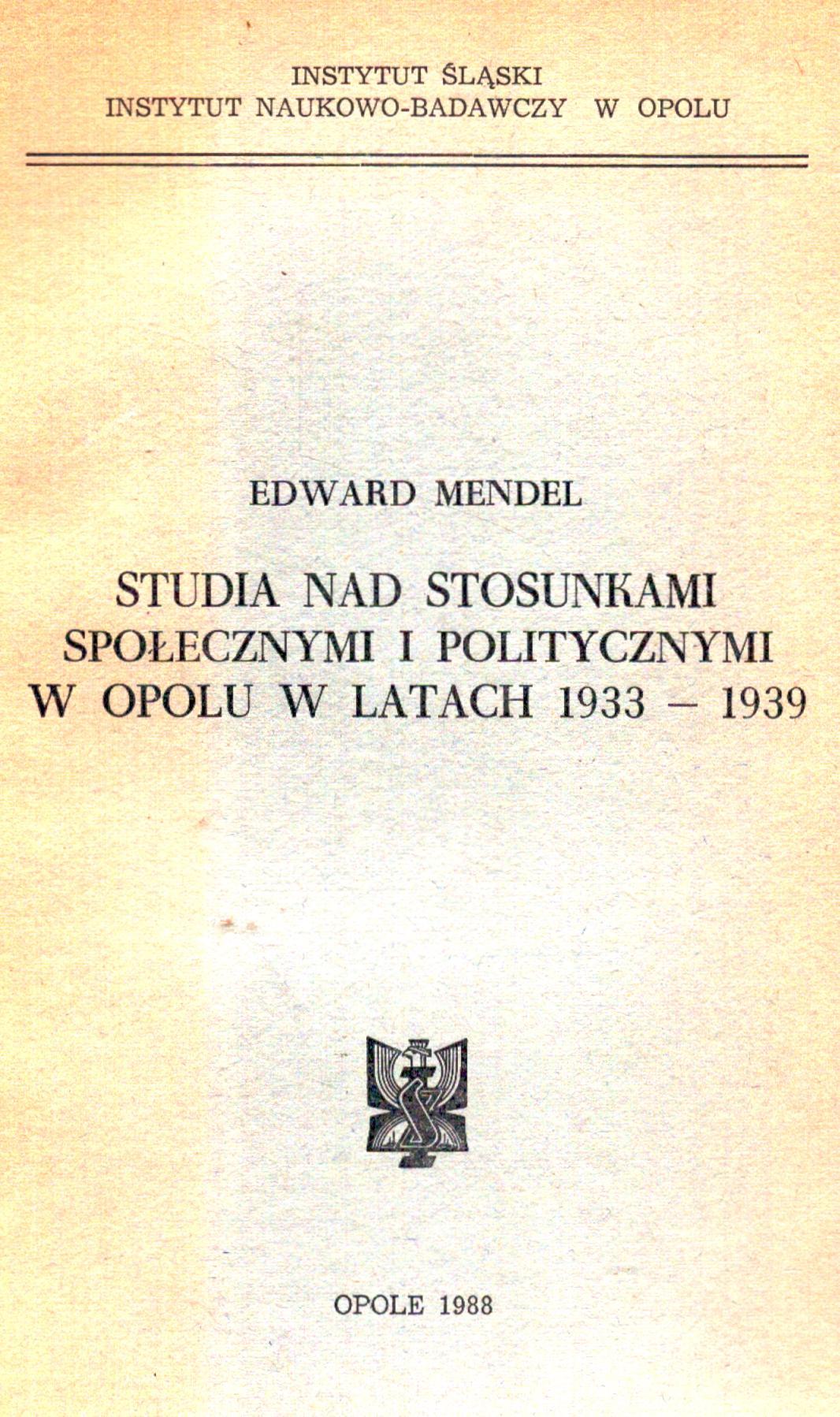 Studia nad stosunkami społecznymi i politycznymi w Opolu w latach 1933-1939