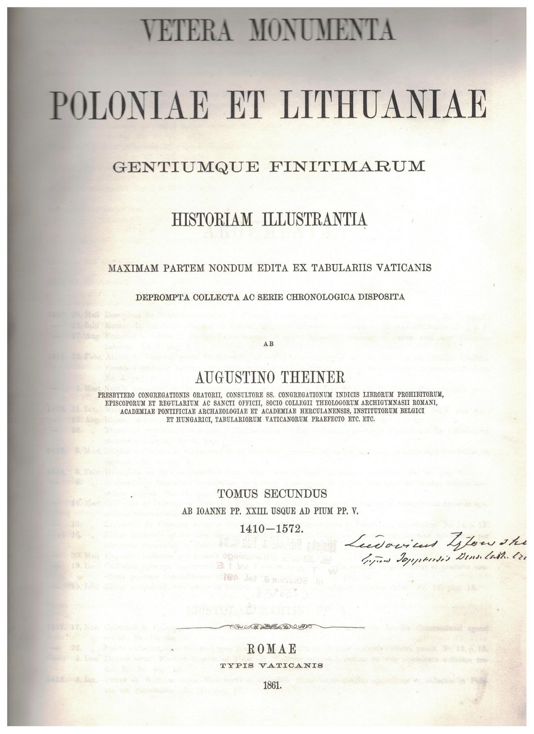 Vetera monumenta Poloniae et Lithuaniae gentiumque finitimarum historiam illustrantia: Ab Ioanne PP. XXIII usque ad Pium PP. V. 1410-1572: